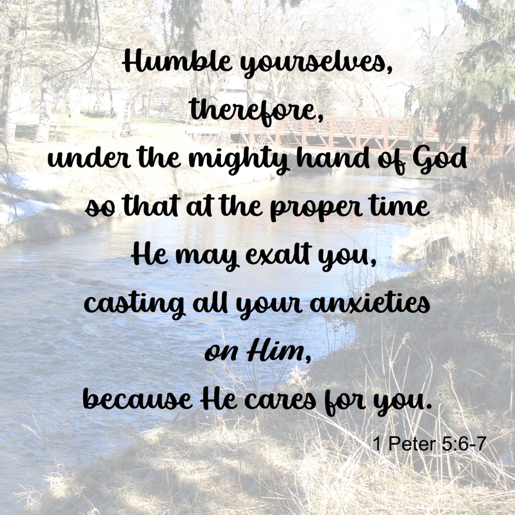 Dear Heavenly Father, humbling ourselves is a hard thing to do. We want to be independent and solve our own problems. We forget that Your loving mighty hand is controlling the details of our lives. Please help us to cast our anxieties on You. Thank You for caring and knowing what we need.