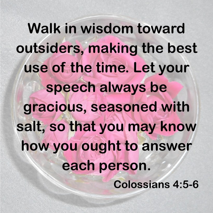 We are still facing heightened emotions based on all the things we hear and read as well as what we are living through. Friends who claim to know and serve Christ – we have a job to do no matter what. We need to make wise use of our time and be gracious in our speech. Right now, it is hard. We are being hit in areas of our lives that we are not used to. This scares us. Fear can push us towards ungracious words and behavior. We need to keep praying for wisdom and grace to navigate our circumstances in a way that honors the One Who has given us eternal life.
