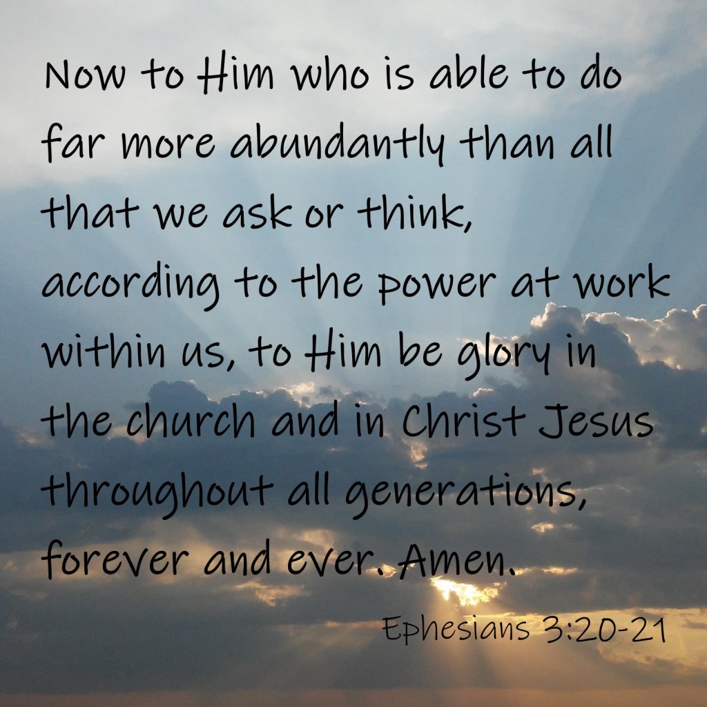 While it seems easier to ask for things in our prayers, we need to remember to praise and thank God for what He does. God allows us to see some of His work, but I am convinced that He doesn’t share everything He does. None of us could handle all the work Almighty God performs – even in our own lives.