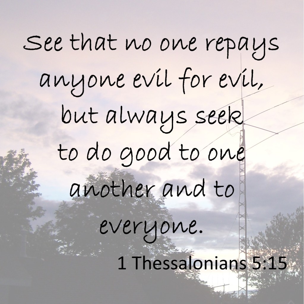 This verse can be challenging to obey. We usually want to retaliate or at least see the person held accountable. However, God’s Word commands us to seek to do good. This doesn’t mean to reward evil – this just gives us a guideline for our actions when we face evil. God will hold the wicked accountable (Romans 12:19). This is His job.