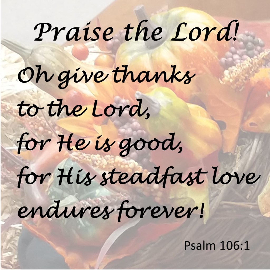 I want to start today with praising God. Thankfulness is appropriate – especially this time of year, but I wonder if we forget plain, simple praise. God is so good. He has done so many things for us. His steadfast love is amazing.