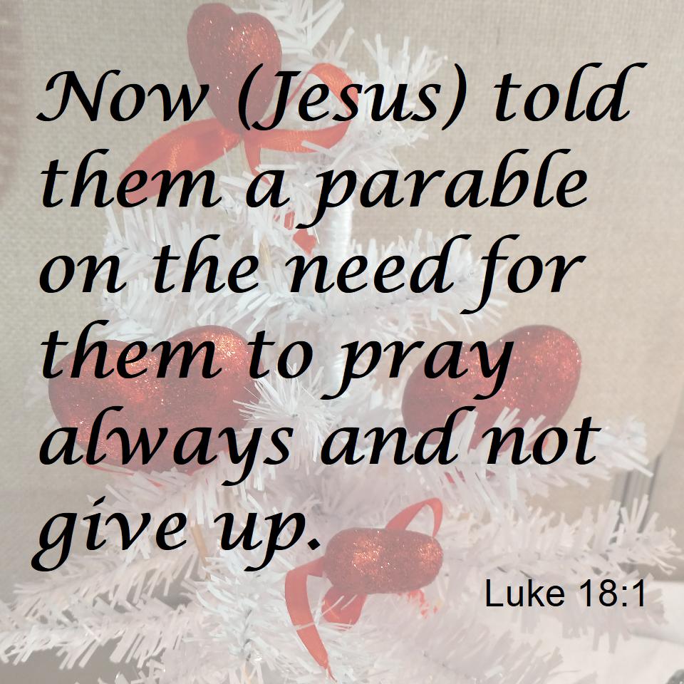 We often see the words “Don’t Give Up” in motivational tools. In this passage Jesus tells us a story about not giving up. A widow goes to an unjust judge several times before he truly listens. However, eventually the judge gives in. The point of the story is that God who is the perfect judge will give help to those He loves as they cry out to Him.