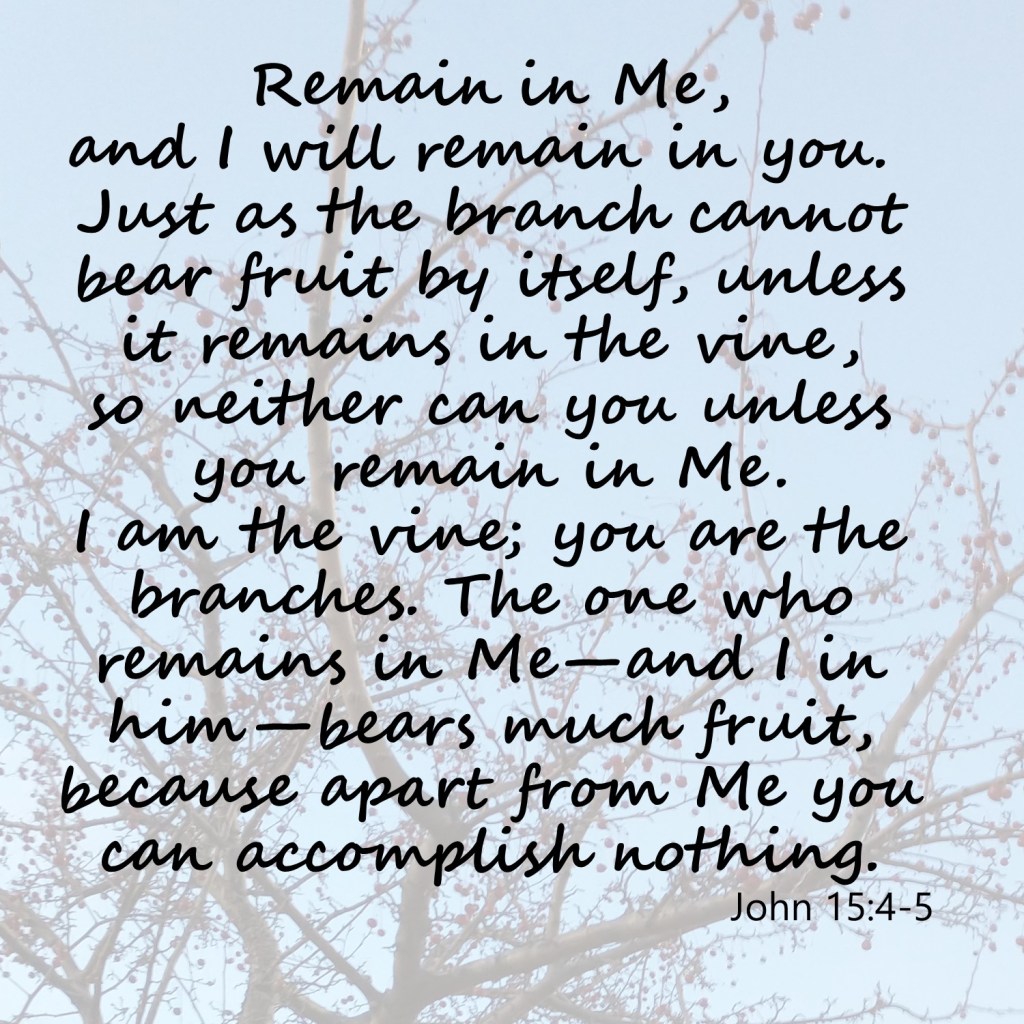 Dear Heavenly Father, thank You that You want a relationship with us. Thank You that Jesus died on the cross, was buried, and rose again. Please help us to understand what we should do to remain or abide in You. We are prone to doing things on our own and accomplishing nothing. Please give us a hunger to “bear much fruit” that pushes us to remain as You intend.