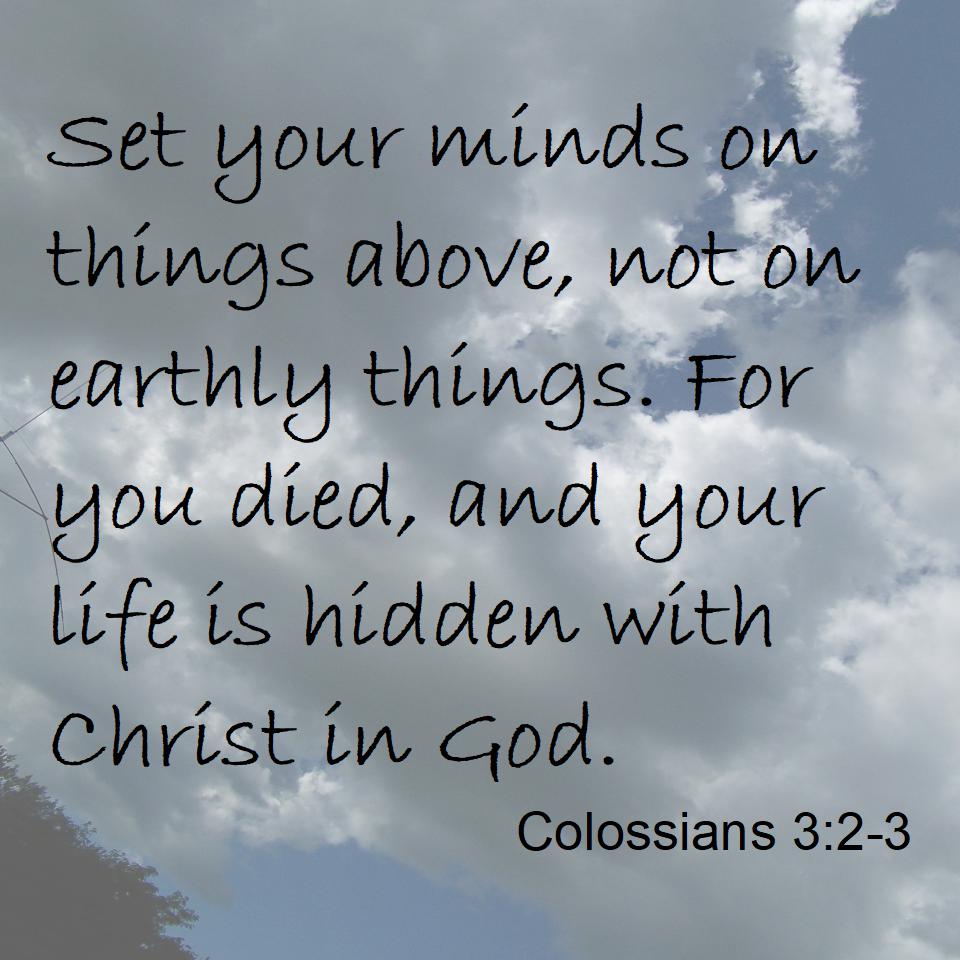We often get caught in looking around us at the difficulties we face. This is where we live. However, in order to do our best in the circumstances we face we need to look up. Our life’s purpose is to honor and glorify God. We are to “store up…treasure in heaven” according to Matthew 6:20. Colossians 2:3 reminds us that we are dead to ourselves and our life is all about Christ. While the concept of dying to ourselves is painful, looking up gives us a beautiful view.